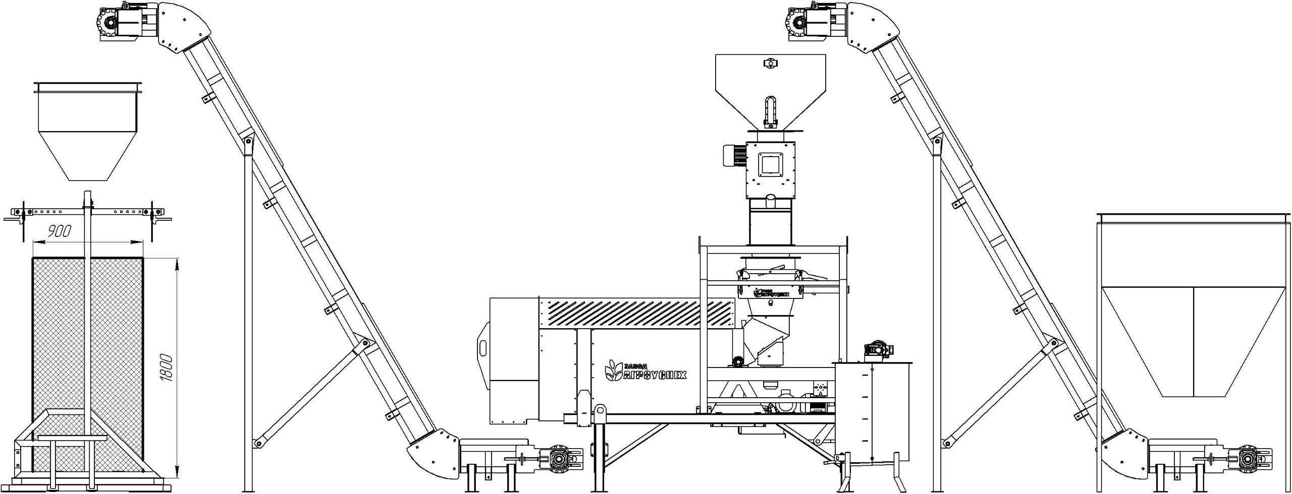 — Возможна установка полностью линии протравки под ключ — Приемный бункер — Ленточный транспортер — Затаривание в мешок или Биг-Бэг.
